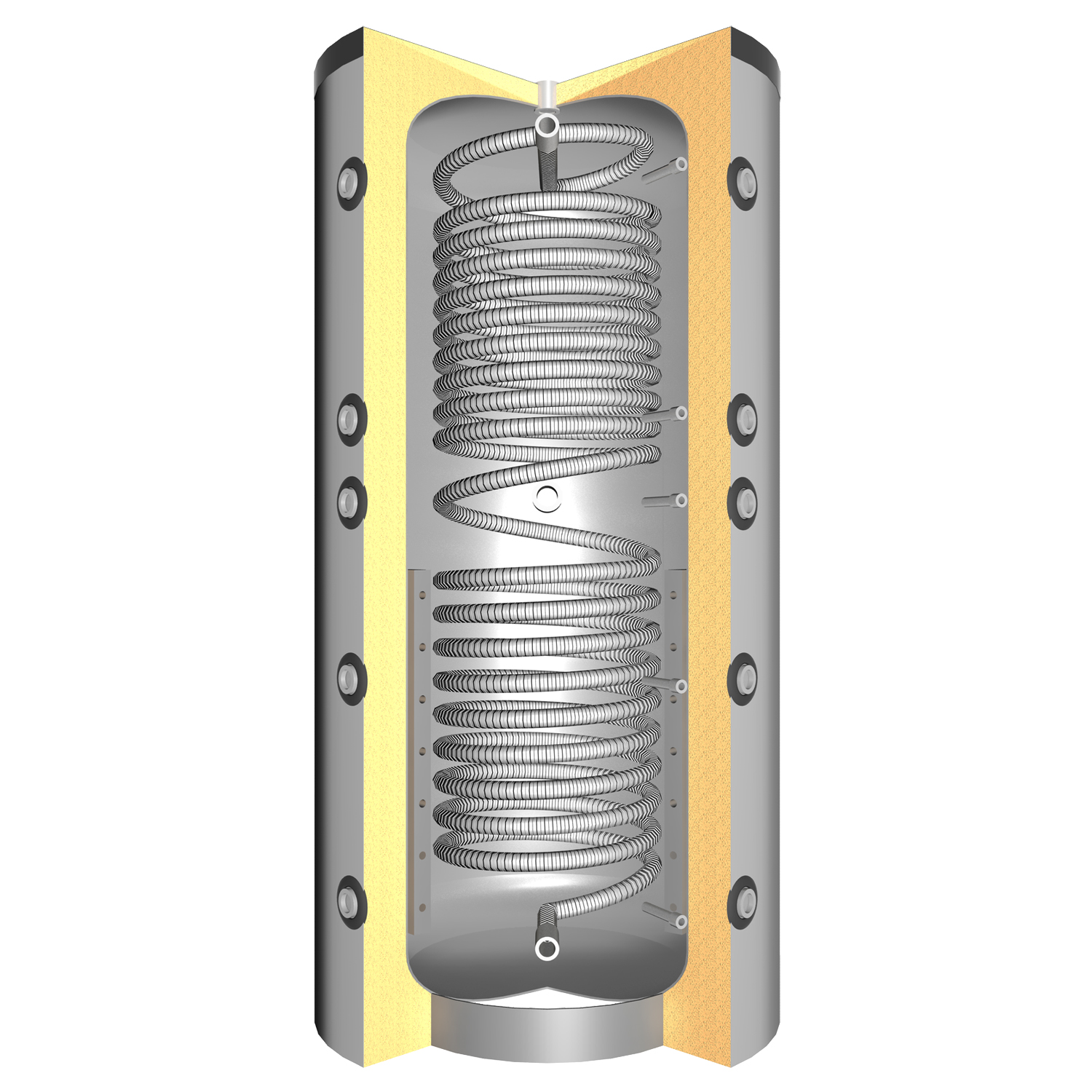 Le ballon tampon SH 900 de haute qualité avec chauffage d'eau sanitaire intégré est adapté au stockage de l'eau de chauffage et au chauffage de l'eau potable à l'aide de systèmes de chauffage au bois, de cogénérateurs et de générateurs de chaleur conventionnels. La connexion avec des poêles à bois bouilleur et des inserts de cheminée, des chaudières, des gazéificateurs de bois, etc. ne pose aucun problème. L'échangeur de chaleur en tube ondulé en acier inoxydable est solidement soudé. Grâce à la construction haute et élancée du ballon hygiénique, un stockage en couches efficace est possible. Deux canaux de guidage de couches soutiennent ce processus en plus. Le principe de passage du ballon vous assure un chauffage de l'eau sanitaire sans légionelles avec un débit d'eau élevé.