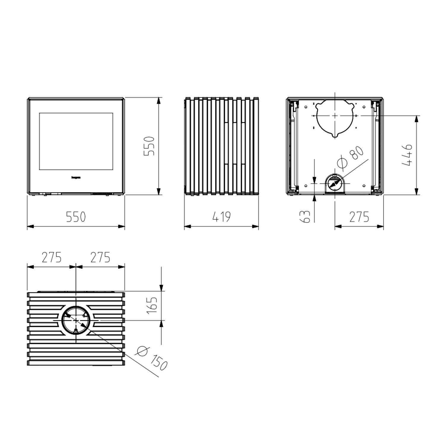 - Dimensions (H x L x P): 550 x 550 x 419 mm